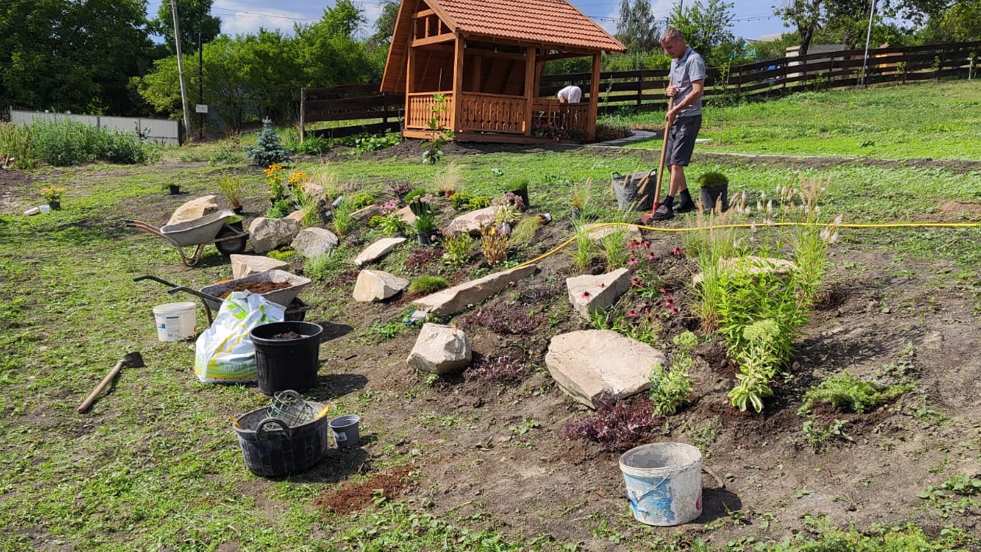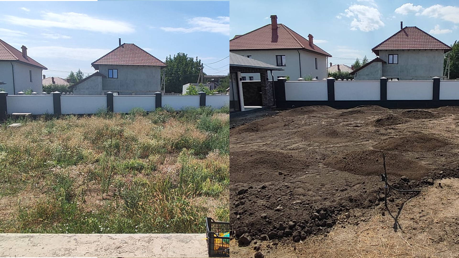 Lucrările pe teren: Pregătirea terenului (nivelare, drenaj, pregătirea solului). Instalarea sistemelor de irigații și iluminat. Lucrările de pavare (alei, terase, curți, zone de acces); Plantarea, instalarea structurilor și a elementelor decorative.